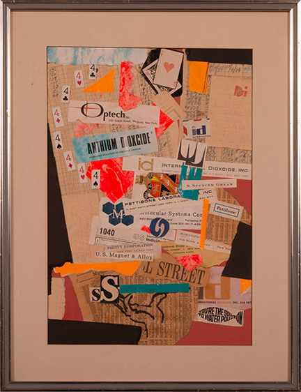 Paper collage, 11 x 16 inches unframed. Not signed. Framed by the artist.